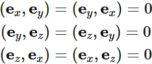 $\mathbf{e}_{x}$、$\mathbf{e}_{y}$、$\mathbf{e}_{z}$ と表す。