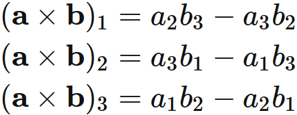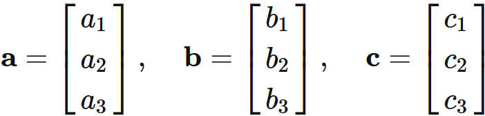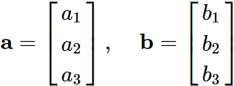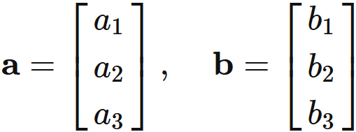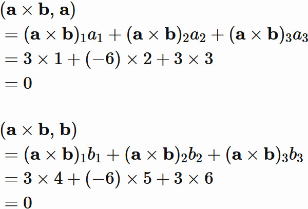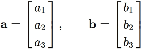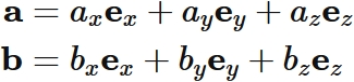 任意の $3$ 次元ベクトル $\mathbf{a}$ と $\mathbf{b}$ の成分をそれぞれ