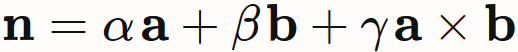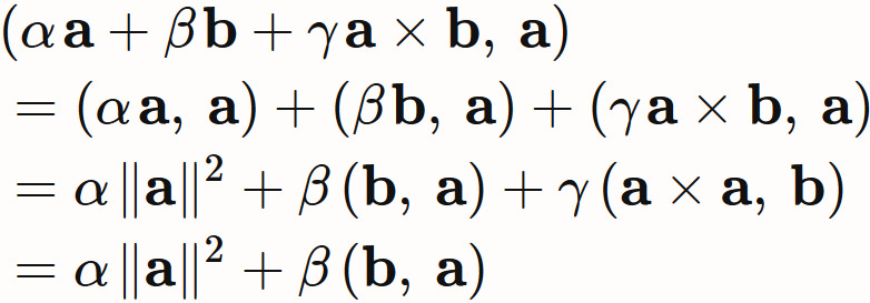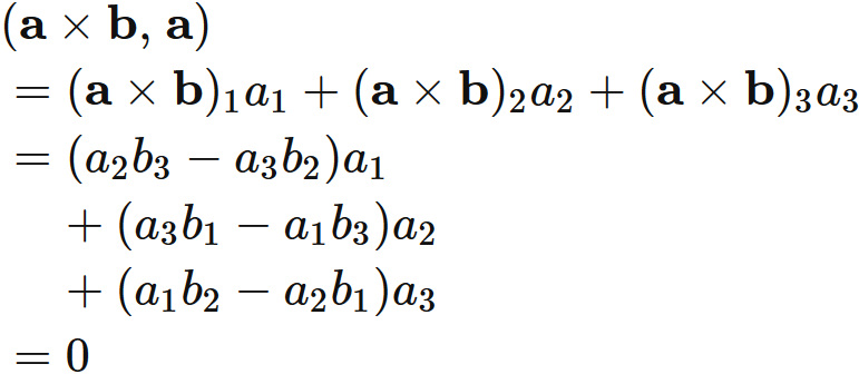 $\{ \mathbf{a}, \mathbf{b}, \mathbf{a} \times \mathbf{b} \}$ は互いに線形独立なベクトルである。