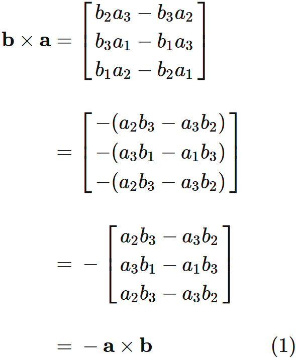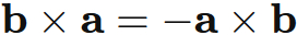 外積を成す任意の二つのベクトルを入れ替えると、もとの積と符号だけ異なるベクトルになる。
