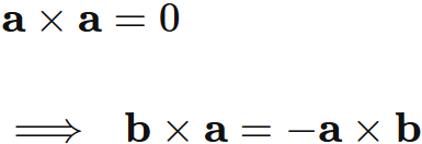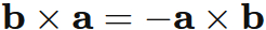 $\mathbf{a} \times \mathbf{a} = 0 \hspace{3mm} \Longrightarrow \hspace{3mm} \mathbf{b} \times \mathbf{a} = - \mathbf{a} \times \mathbf{b}$