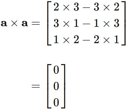 同じベクトル同士の外積は一般に $\mathbf{0}$ ベクトルになる。