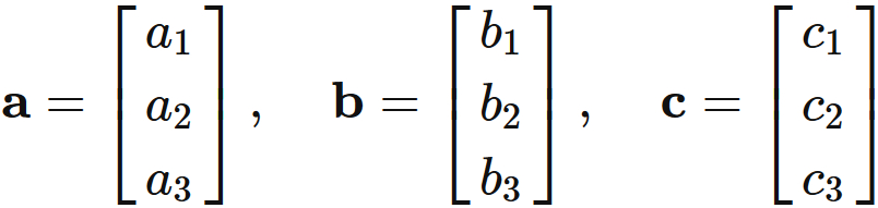 $3$ 次元ベクトル $\mathbf{a}$、$\mathbf{b}$、$\mathbf{c}$ による積