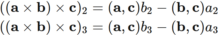 $\mathbf{a} \times ( \mathbf{b} \times \mathbf{c}) = (\mathbf{a}, \mathbf{c}) \mathbf{b} - (\mathbf{a}, \mathbf{b}) \mathbf{c}$ の証明