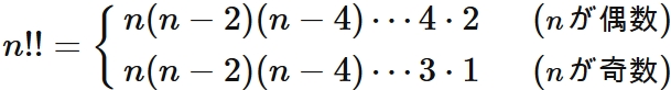 以上の結果を double factorial の記号
